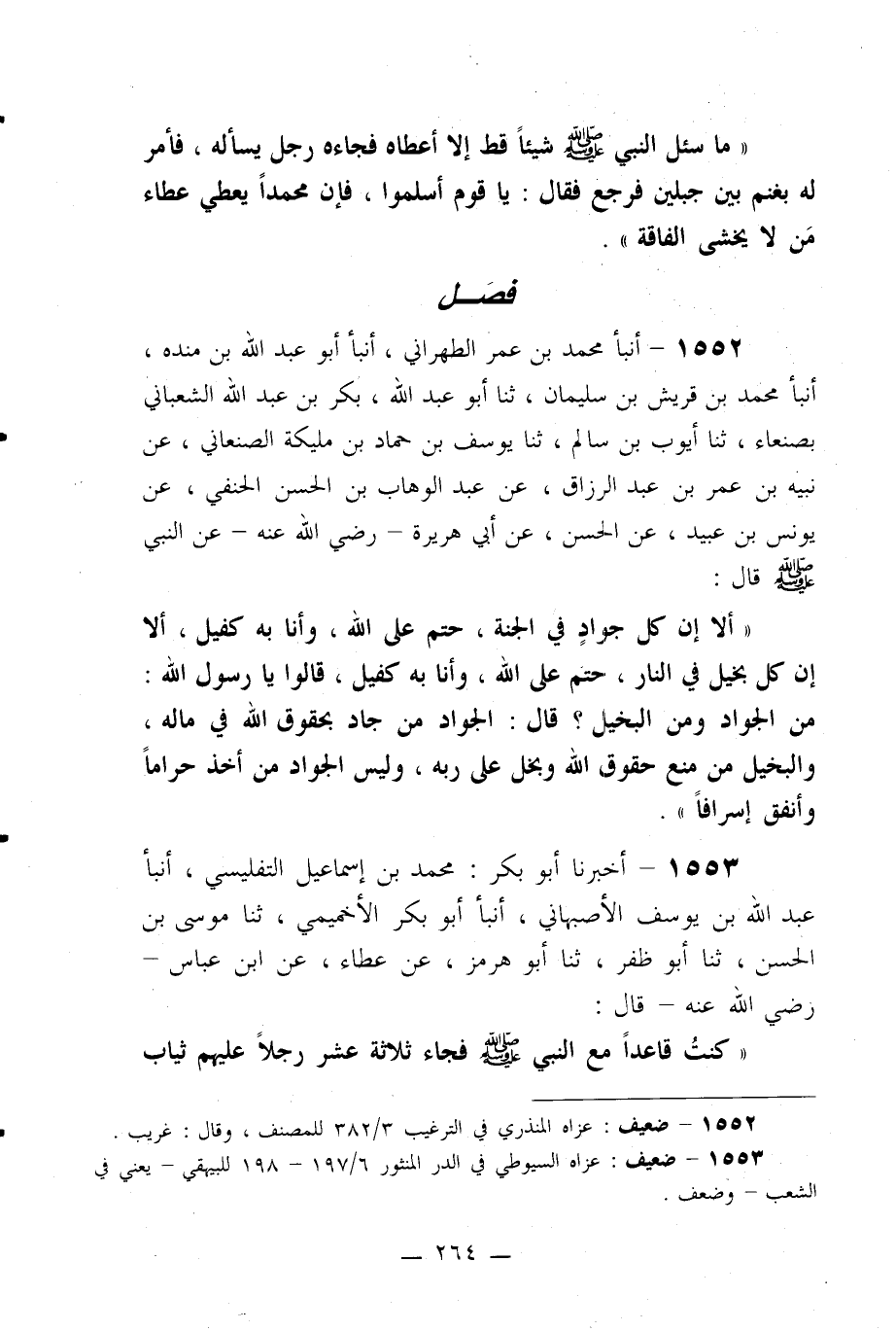 1552- أنبأ محمد بن عمر الطهراني، أنبأ أبو عبد الله بن منده، أنبأ محمد بن قريش بن سليمان، ثنا أبو عبد الله، بكر بن عبد الله الشعباني بصنعاء، ثنا أيوب بن سالم، ثنا يوسف بن حماد بن مليكة الصنعاني، عن نبيه بن عمر بن عبد الرزاق، عن عبد الوهاب بن الحسن الحنفي، عن يونس بن عبيد، عن الحسن، عن أبي هريرة –رضي الله عنه- عن النبي صلى الله عليه وسلم قال: