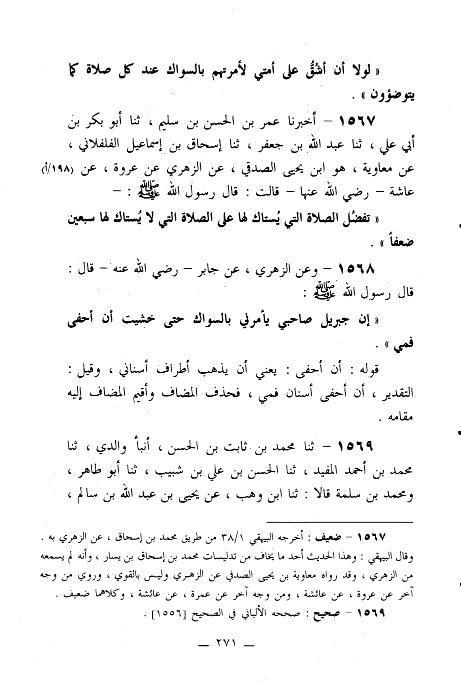 1567- أخبرنا عمر بن الحسن بن سليم، ثنا أبو بكر بن أبي علي، ثنا عبد الله بن جعفر، ثنا إسحاق بن إسماعيل الفلفلاني، عن معاوية، هو ابن يحيى الصدقي، عن الزهري عن عروة، عن عائشة –رضي الله عنها- قالت: قال رسول الله صلى الله عليه وسلم: