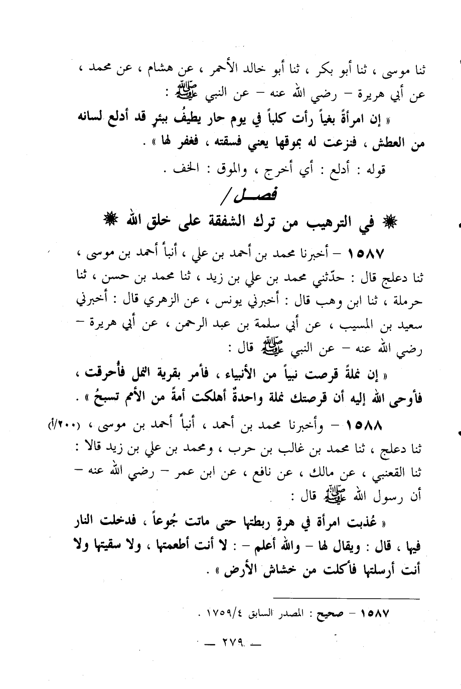 1587- أخبرنا محمد بن أحمد بن علي، أنبأ أحمد بن موسى، ثنا دعلج قال: حدثني محمد بن علي بن زيد، ثنا محمد بن حسن، ثنا حرملة، ثنا ابن وهب قال: أخبرني يونس، عن الزهري قال: أخبرني سعيد بن المسيب، عن أبي سلمة بن عبد الرحمن، عن أبي هريرة –رضي الله عنه- عن النبي صلى الله عليه وسلم قال: