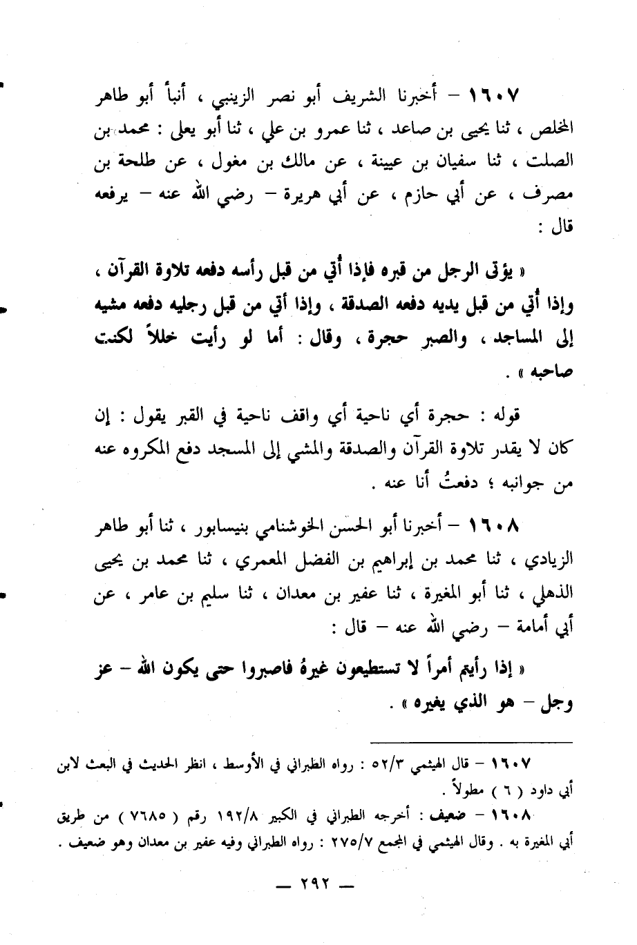 1608- أخبرنا أبو الحسن الخوشنامي بنيسابور، ثنا أبو طاهر الزيادي، ثنا محمد بن إبراهيم بن الفضل المعمري، ثنا محمد بن يحيى الذهلي، ثنا أبو المغيرة، ثنا عفير بن معدان، ثنا سليم بن عامر، عن أبي أمامة –رضي الله عنه- قال: