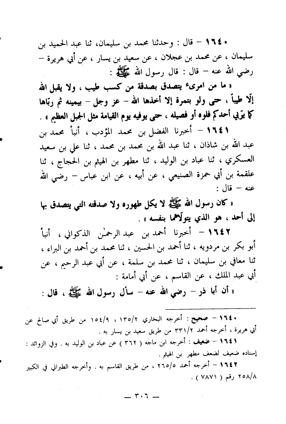 1640- قال: وحدثنا محمد بن سليمان، ثنا عبد الحميد بن سليمان، عن محمد بن عجلان، عن سعيد بن يسار، عن أبي هريرة –رضي الله عنه- قال: قال رسول الله صلى الله عليه وسلم: