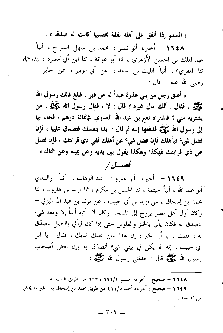 1648- أخبرنا أبو نصر: محمد بن سهل السراج، أنبأ عبد الملك بن الحسن الأزهري، ثنا أبو عوانة، ثنا ابن أبي مسرة، ثنا المقرئ، أنبأ الليث بن سعد، عن أبي الزبير، عن جابر –رضي الله عنه- قال: