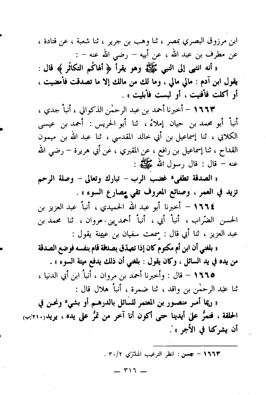 1664- أخبرنا أبو عبد الله الحميدي، أنبأ عبد العزيز بن الحسن الضراب، أنبأ أبي، أنبأ أحمد بن مروان، ثنا محمد بن عبد العزيز، ثنا أبي قال: سمعت سفيان بن عيينة يقول: