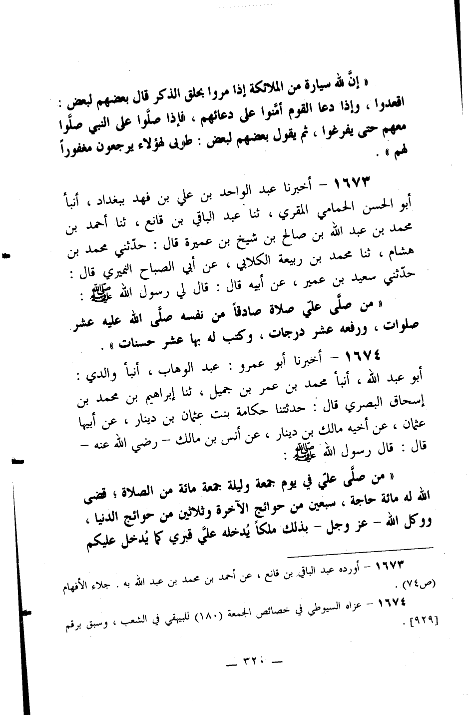 ((من صلى علي في يوم جمعة وليلة جمعة مائة من الصلاة؛ قضى الله له مائة حاجة، سبعين من حوائج الآخرة وثلاثين من حوائج الدنيا، ووكل الله –عز وجل- بذلك ملكاً يدخله علي قبري كما يدخل عليكم -[321]- الهدايا، إن علمي بعد موتي كعلمي في الحياة)) .