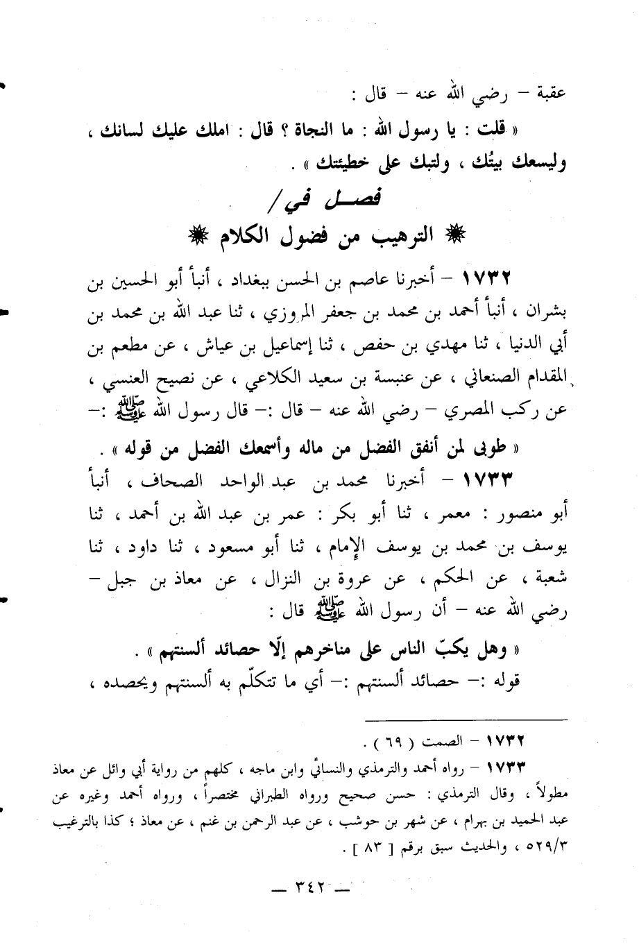 فصل في الترهيب من فضول الكلام