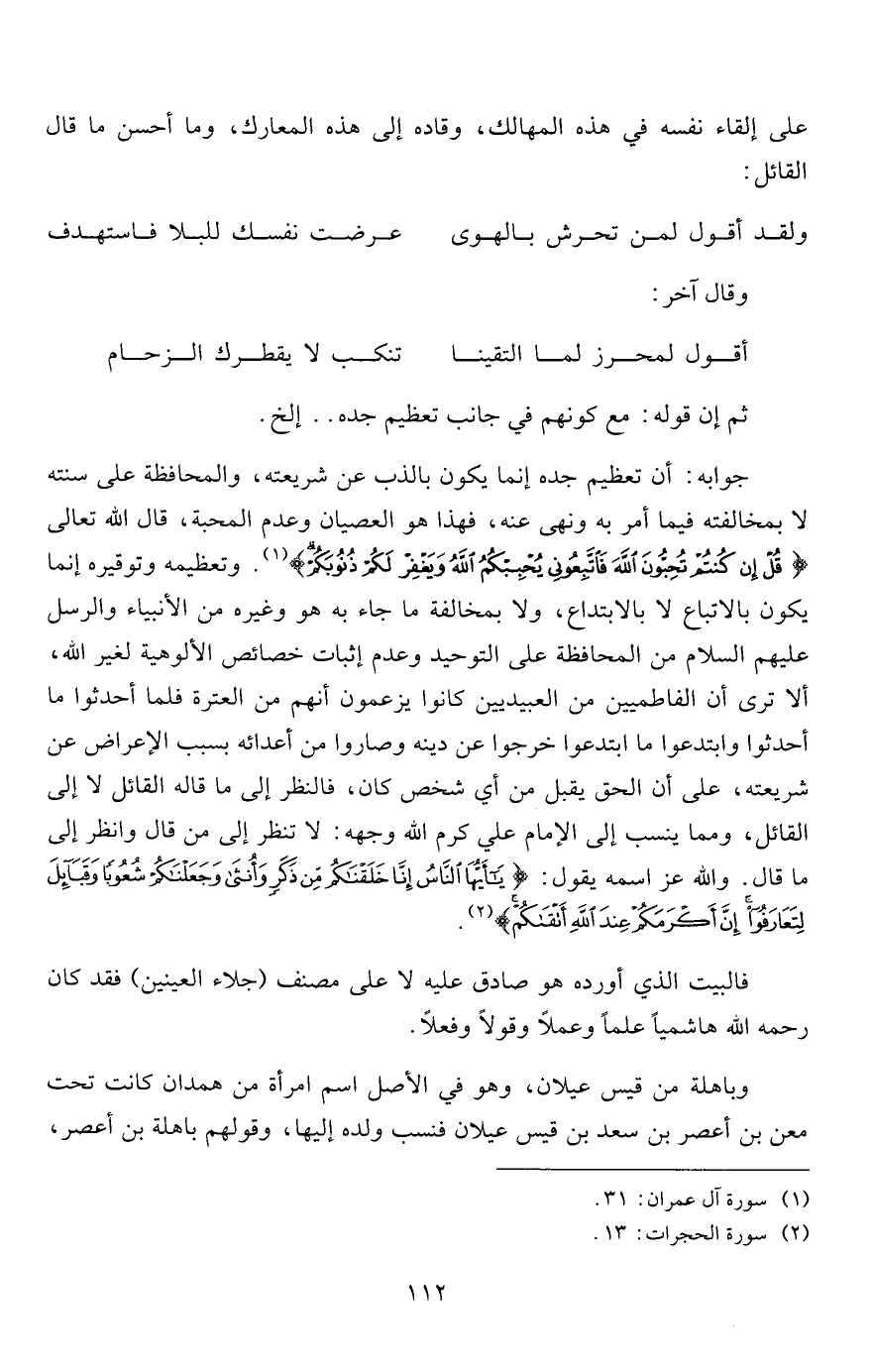 فالبيت الذي أورده هو صادق عليه لا على مصنف "جلاء العينين" فقد كان رحمه الله هاشمياً علماً وعملاً وقولاً وفعلاً.