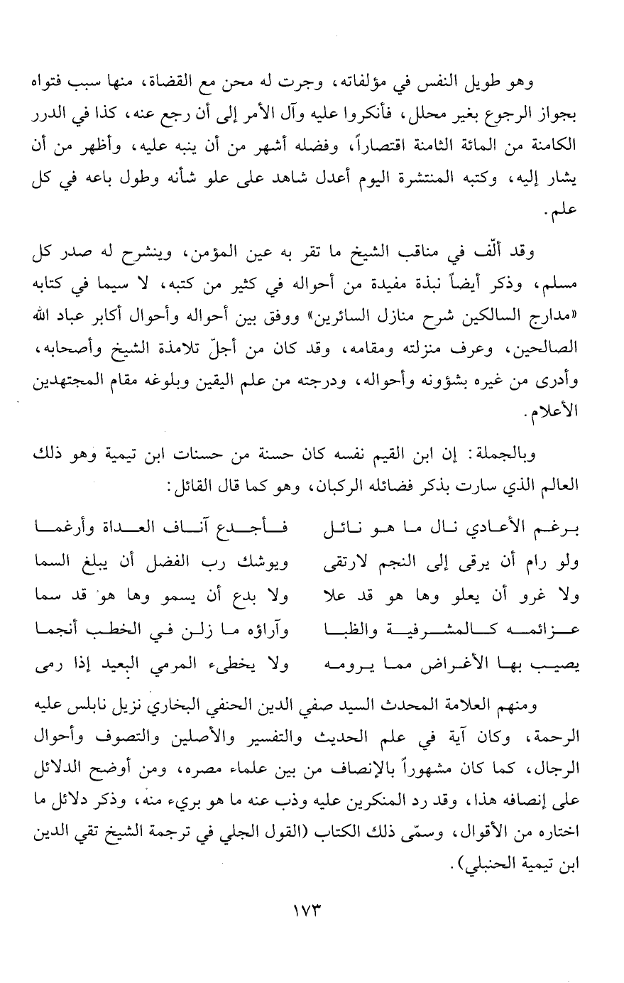 وبالجملة: إن ابن القيم نفسه كان حسنة من حسنات ابن تيمية وهو ذلك العالم الذي سارت بذكر فضائله الركبان، وهو كما قال القائل: