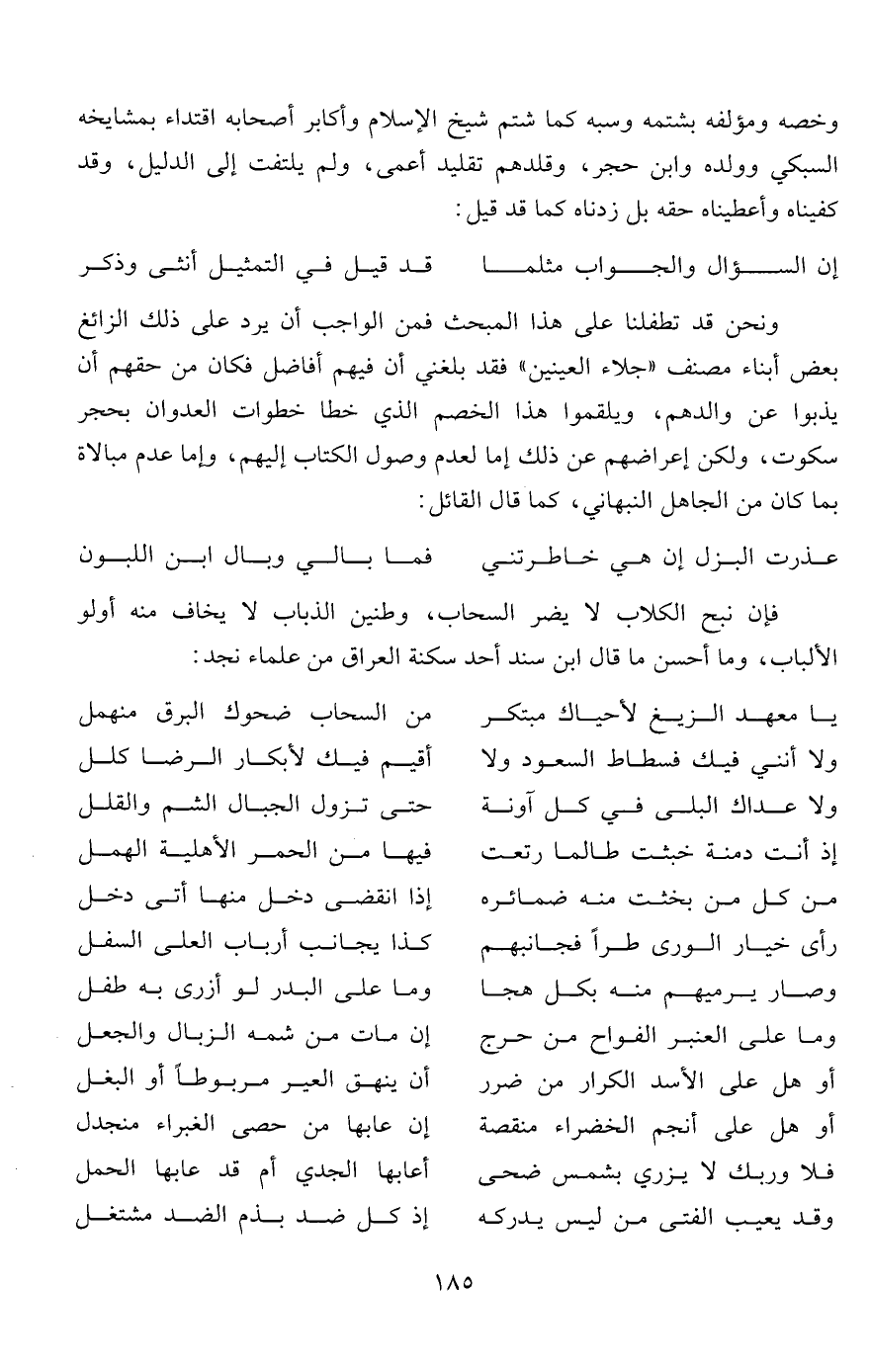 ونحن قد تطفلنا على هذا المبحث فمن الواجب أن يرد على ذلك الزائغ بعض أبناء مصنف "جلاء العينين" فقد بلغني أن فيهم أفاضل فكان من حقهم أن يذبوا عن والدهم، ويلقموا هذا الخصم الذي خطا خطوات العدوان بحجر سكوت، ولكن إعراضهم عن ذلك إما لعدم وصول الكتاب إليهم، وإما عدم مبالاة بما كان من الجاهل النبهاني، كما قال القائل: