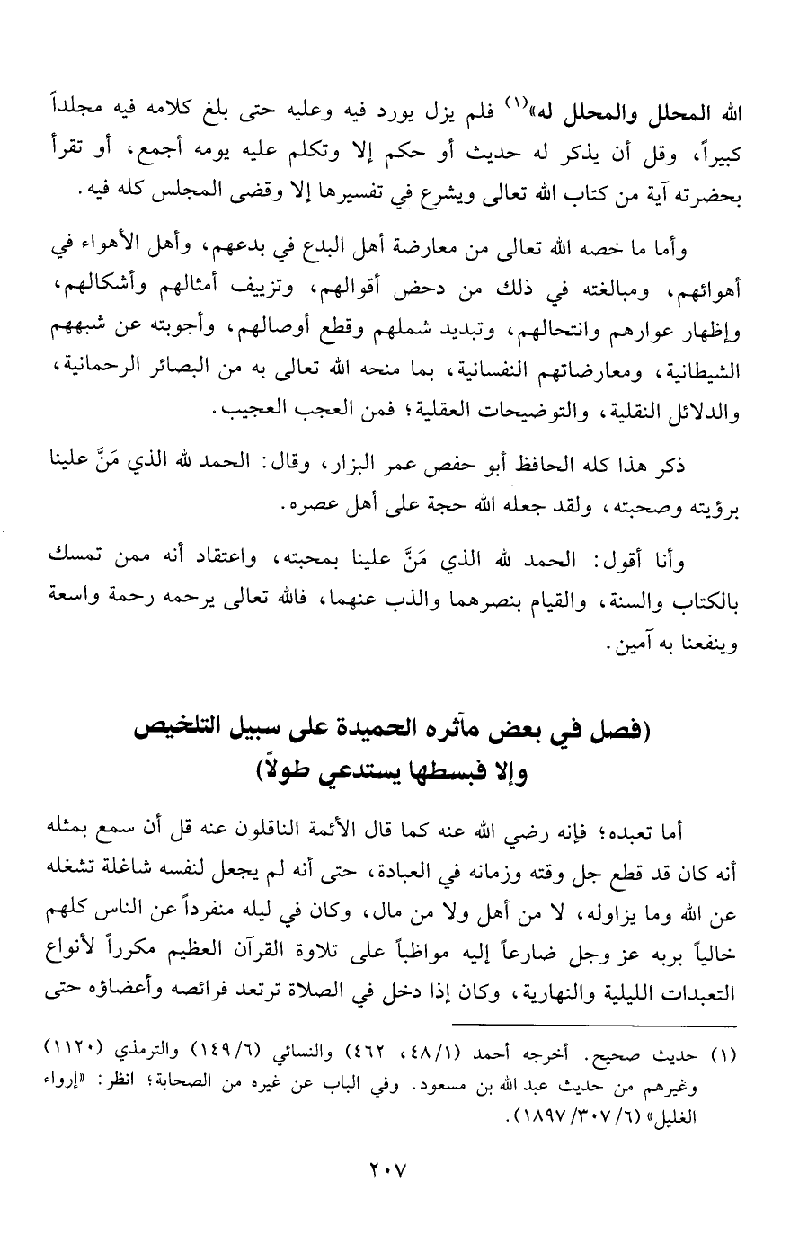 وأنا أقول: الحمد لله الذي مَنَّ علينا بمحبته، واعتقاد أنه ممن تمسك بالكتاب والسنة، والقيام بنصرهما والذب عنهما، فالله تعالى يرحمه رحمة واسعة وينفعنا به آمين.