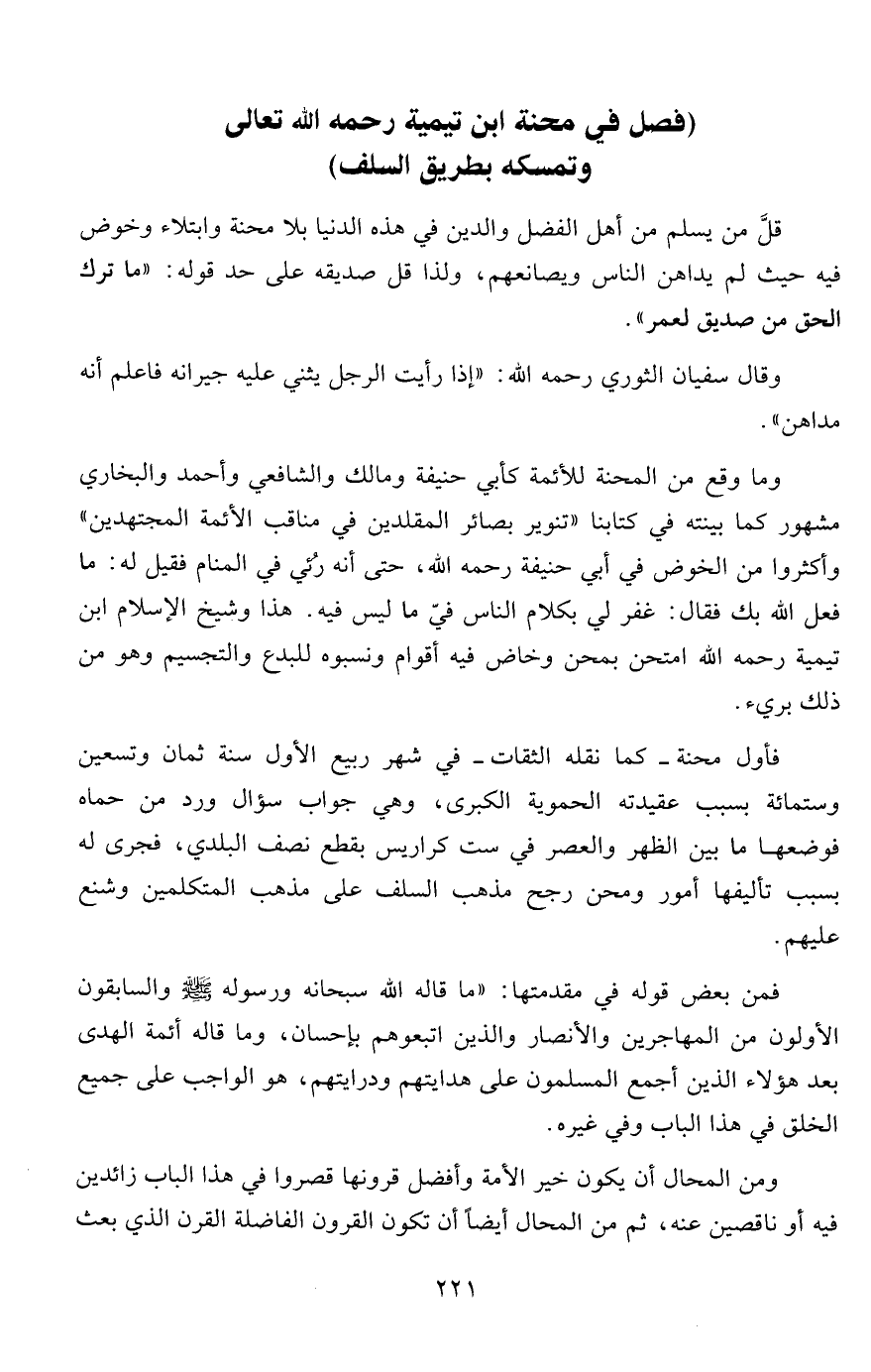 (فصل في محنة ابن تيمية رحمه الله تعالى وتمسكه بطريق السلف)