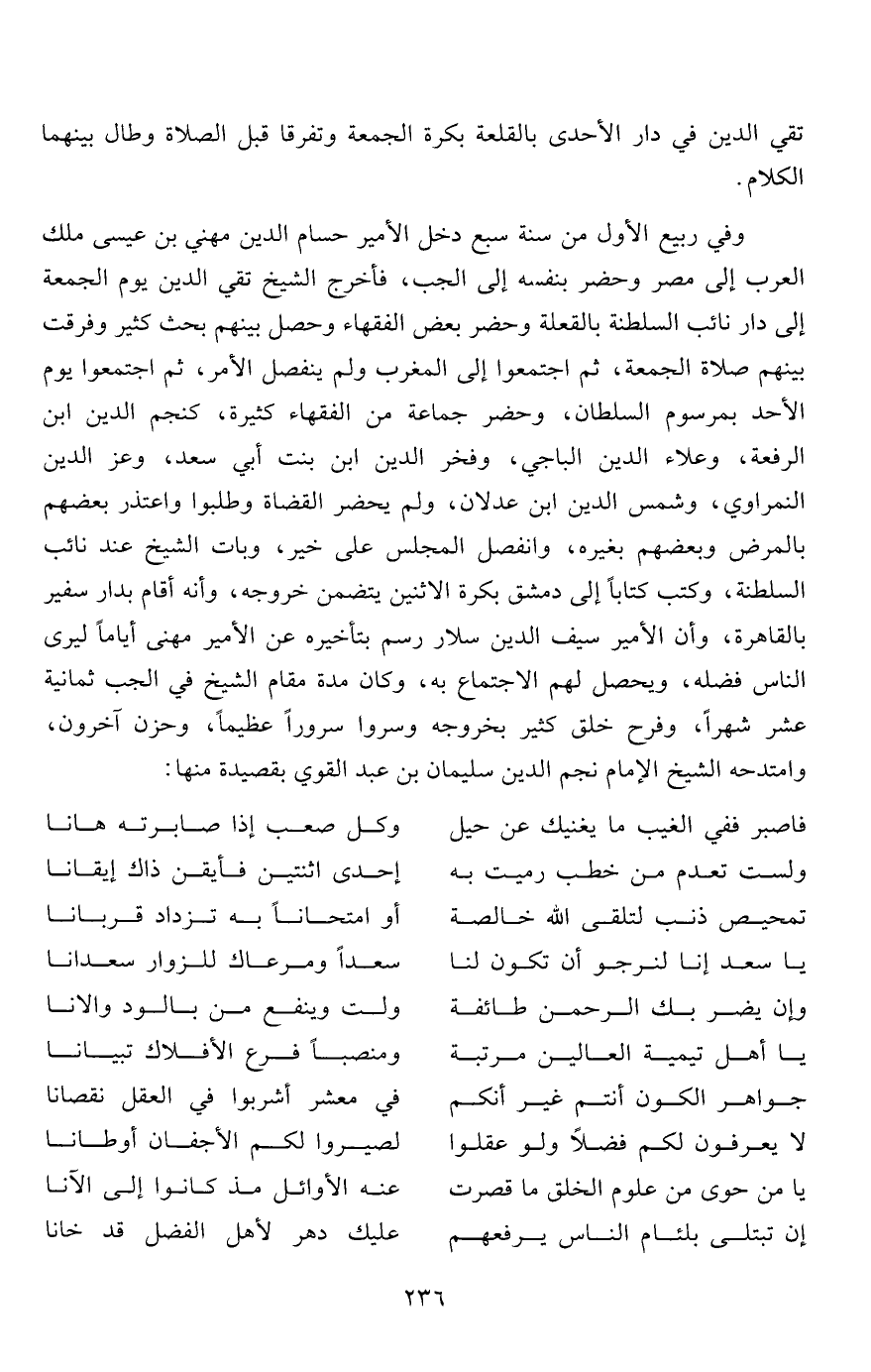 تقي الدين في دار الأحدى بالقلعة بكرة الجمعة وتفرقا قبل الصلاة وطال بينهما الكلام.