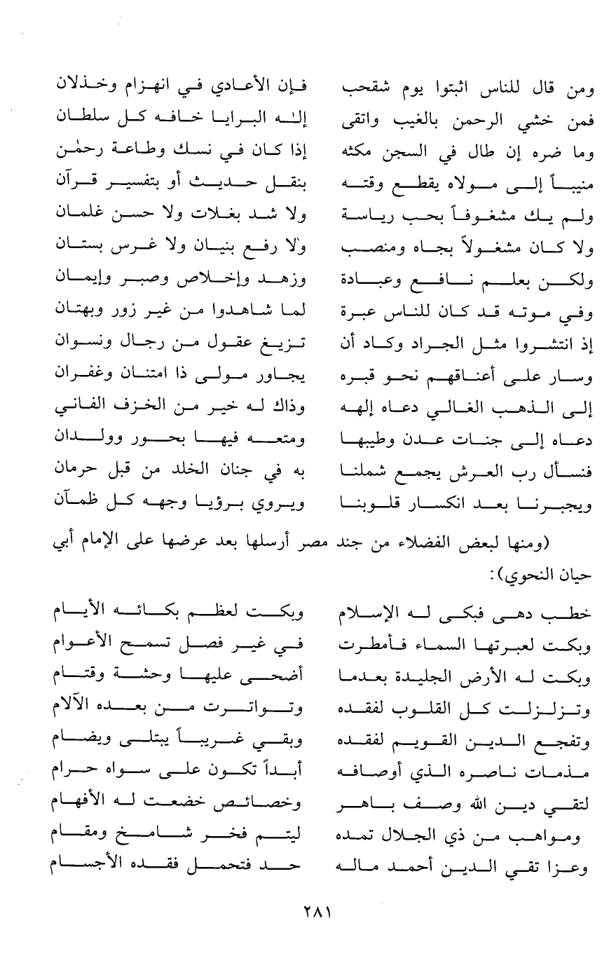 فنسأل رب العرش يجمع شملنا ... به في جنان الخلد من قبل حرمان