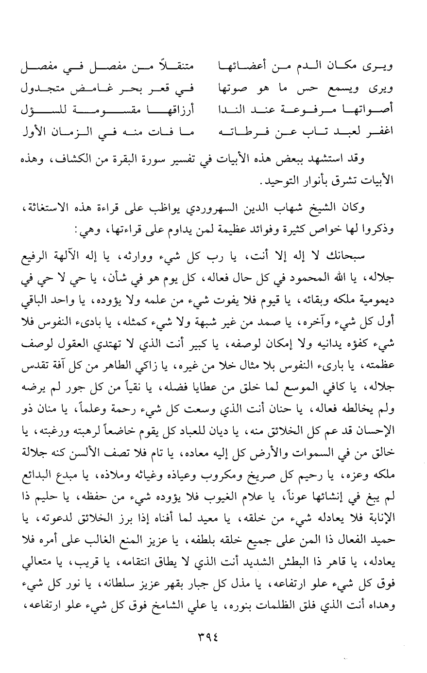وقد استشهد ببعض هذه الأبيات في تفسير سورة البقرة من الكشاف، وهذه الأبيات تشرق بأنوار التوحيد.