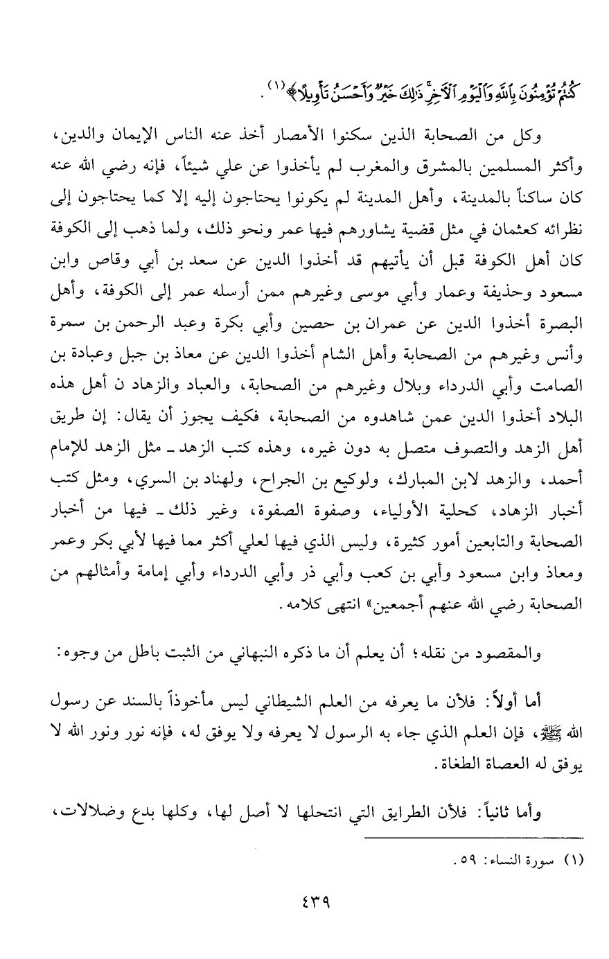 والمقصود من نقله، أن يعلم أن ما ذكره النبهاني من الثبت باطل من وجوه: