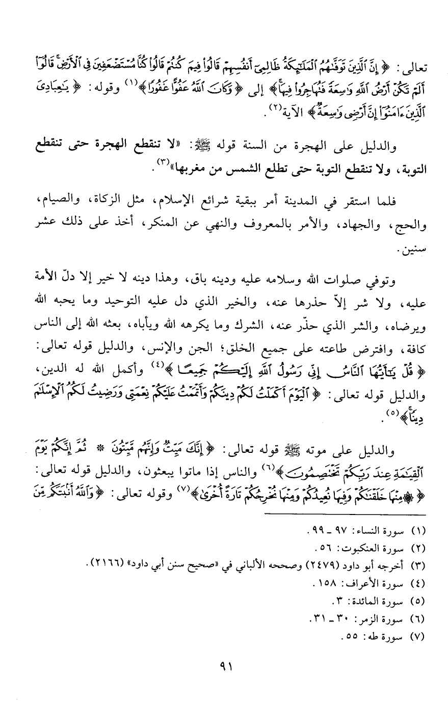 والدليل على الهجرة من السنة قوله صلى الله عليه وسلم: "لا تنقطع الهجرة حتى تنقطع التوبة، ولا تنقطع التوبة حتى تطلع الشمس من مغربها"3.