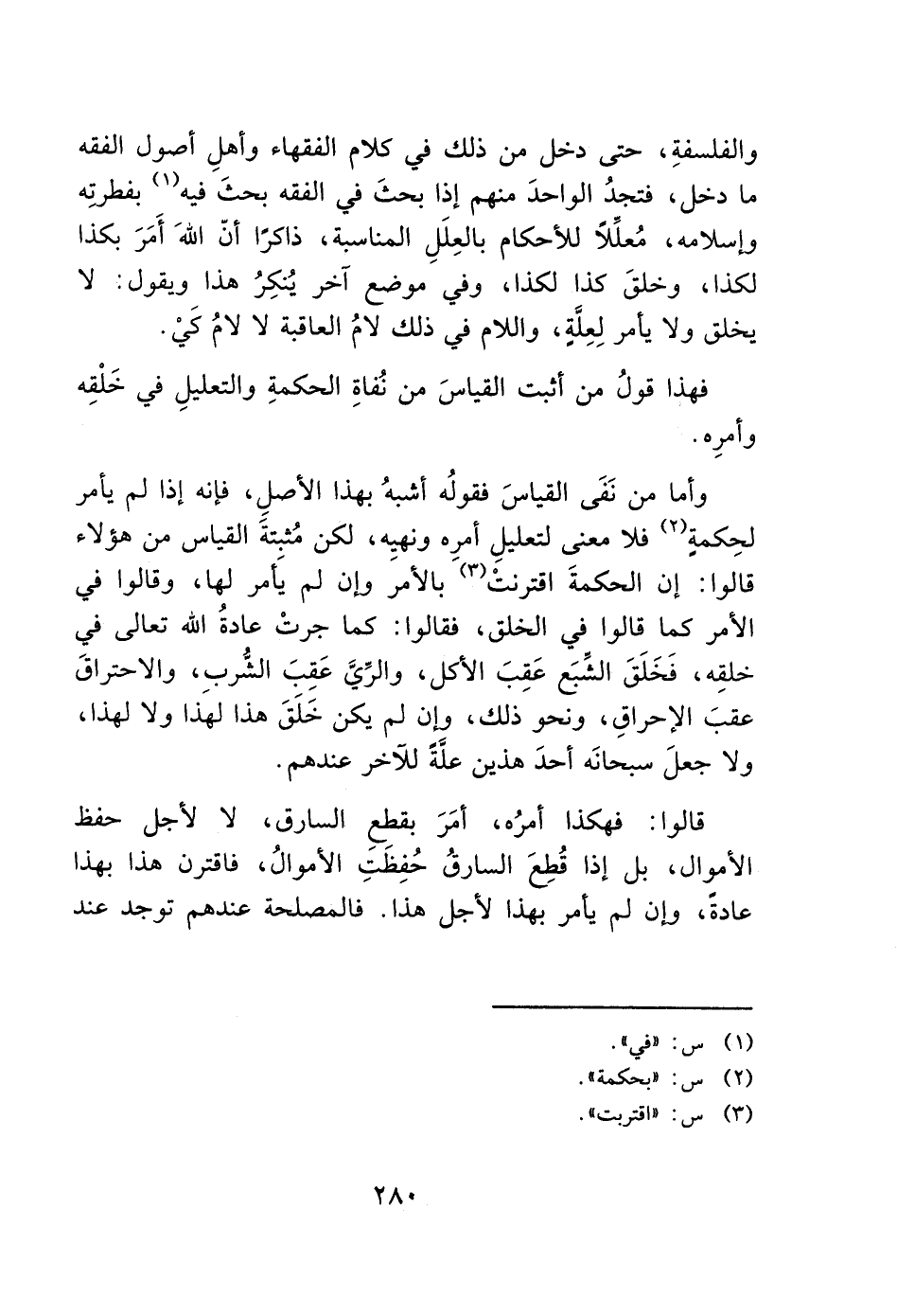 والفلسفةِ، حتى دخل من ذلك في كلام الفقهاء وأهلِ أصول الفقه ما دخل، فتجدُ الواحدَ منهم إذا بحثَ في الفقه بحثَ فيه (1) بفطرتِه وإسلامه، مُعلِّلاً للأحكام بالعِلَلِ المناسبة، ذاكرًا أنّ اللهَ أَمَرَ بكذا لكذا، وخلقَ كذا لكذا، وفي موضع آخر يُنكِرُ هذا ويقول: لا يخلق ولا يأمر لِعِلةِ، واللام في ذلك لامُ العاقبة لا لامُ كَيْ.