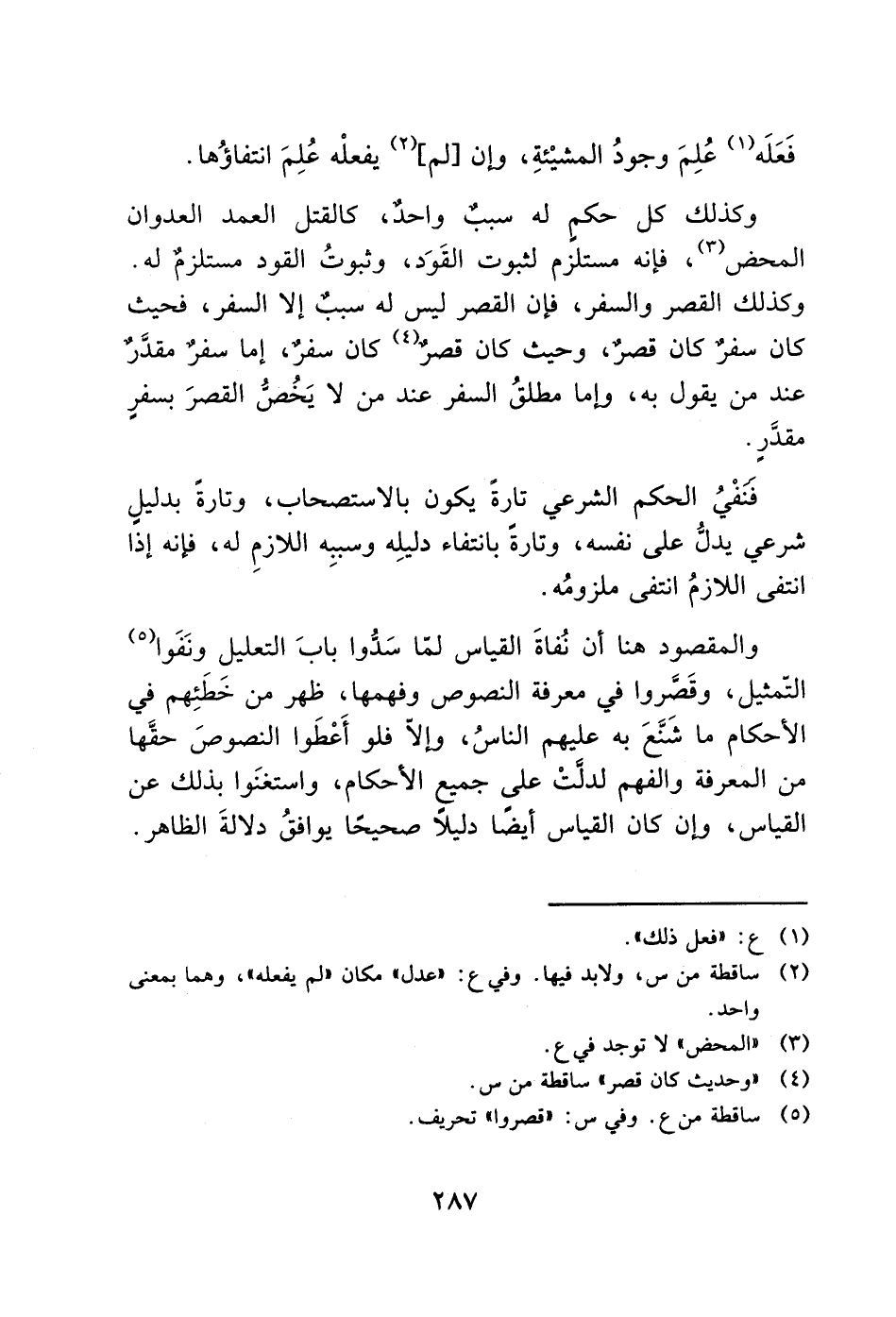 والمقصود هنا أن نُفاةَ القياس لفا سَدُوا بابَ التعليل ونَفَوا (5) التمثيل، وقَصَروا في معرفة النصوص وفهمها، ظهر من خَطَئِهم في الأحكام ما شَنَّعَ به عليهم الناسُ، وإلاّ فلو أَعْطَوا النصوصَ حقَّها من المعرفة والفهم لدلتْ على جميع الأحكام، واستغنَوا بذلك عن القياس، وإن كان القياس أيضًا دليلاً صحيحًا يوافقُ دلالةَ الظاهر.