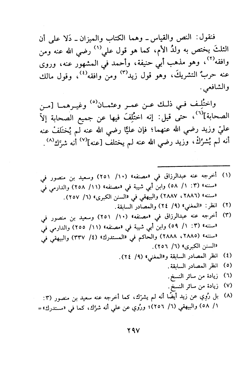 (8) بل رُوِي عن زيد أيضًا أنه لم يشرك، كما أخرجه عنه سعيد بن منصور (3: 1/ 58) والبيهقي (6/ 256)؛ ورُوي عن علي أنه شرَّك، كما في "مستدرك"=