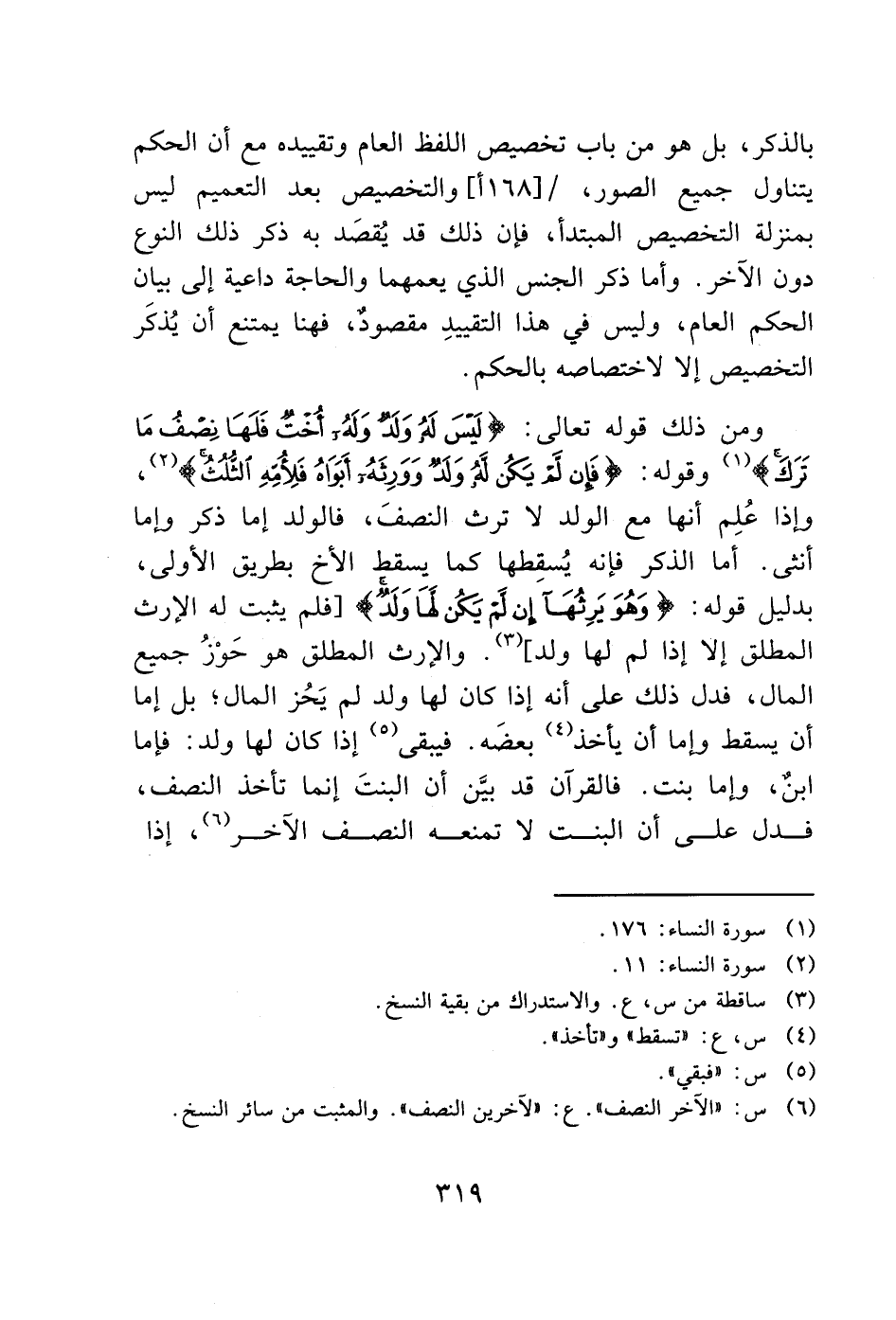 (6) س:"الآخر النصف". ع: "لآخرين النصف". والمثبت من سائر النسخ.