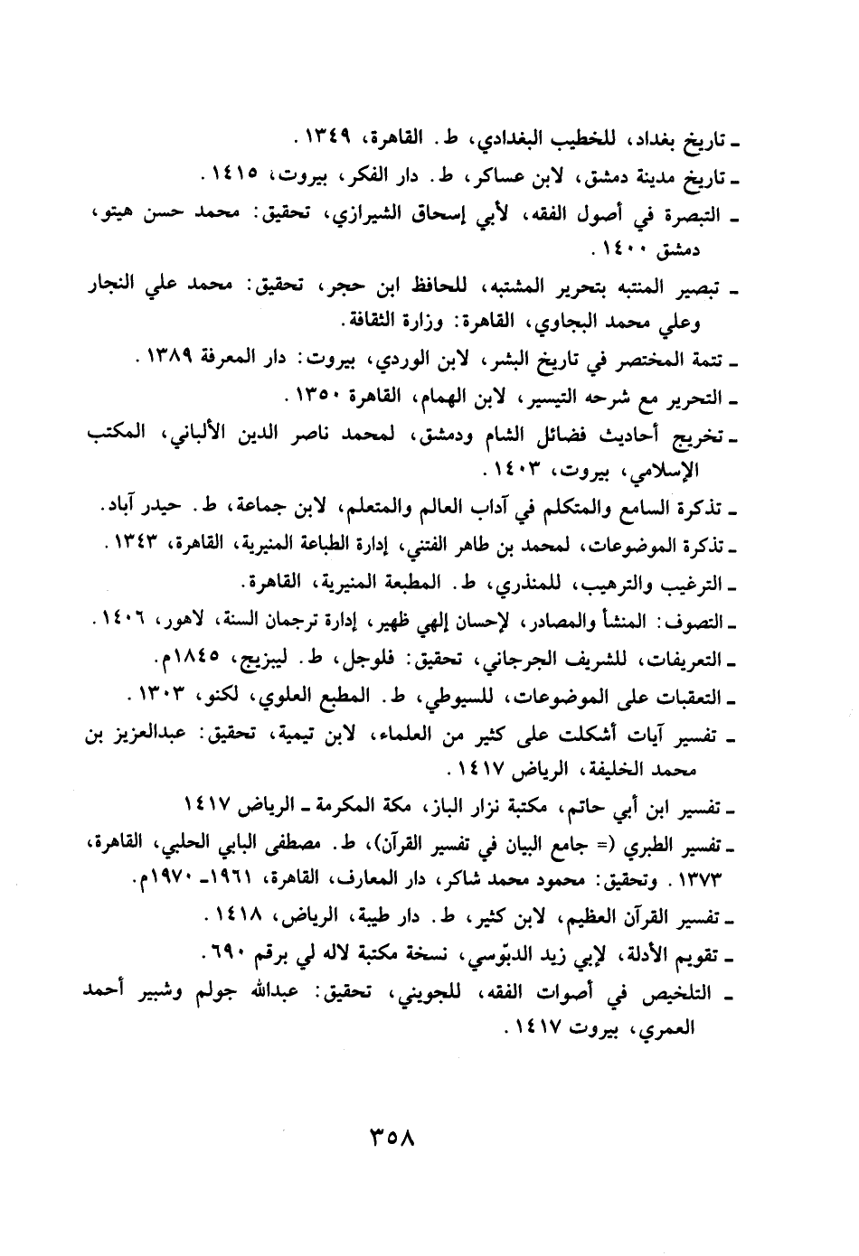 - تذكرة الموضوعات، لمحمد بن طاهر الفتني، إدارة الطباعة المنيرية، القاهرة، 1343.