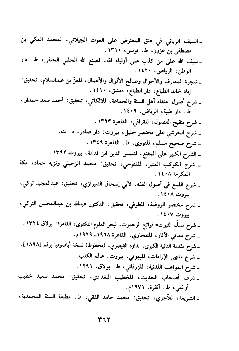 - شرح الكوكب المنير، للفتوحي، تحقيق: محمد الزحيلي ونزيه حماد، مكة المكرمة 1408.