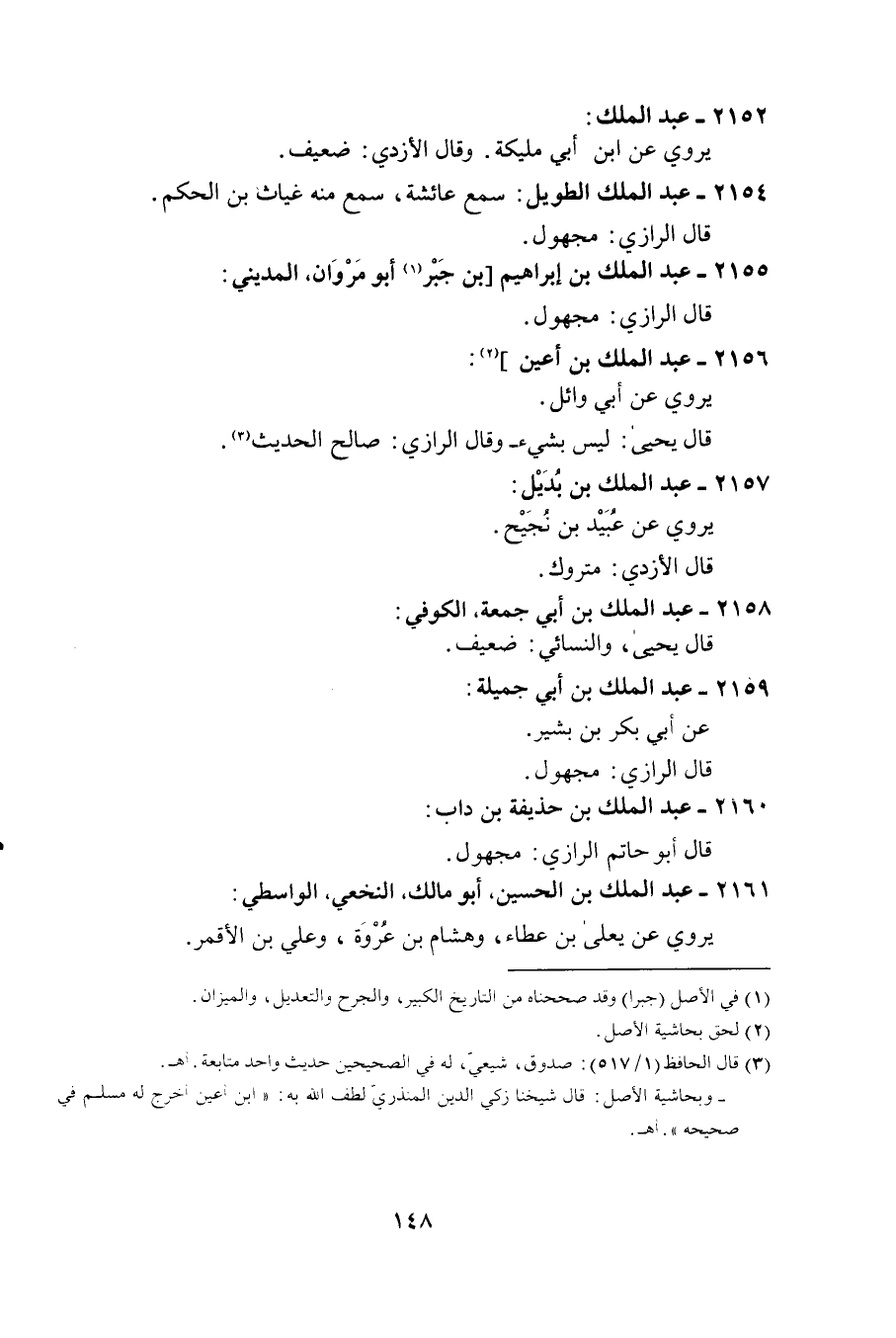 2154 - عبد الْملك الطَّوِيل سمع عَائِشَة سمع مِنْهُ غياث بن الحكم قَالَ الرَّازِيّ مَجْهُول