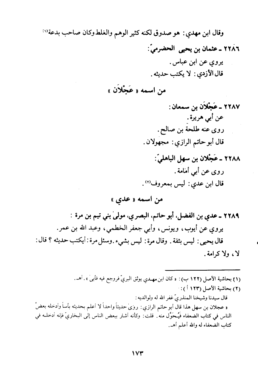 2288 - عجلَان بن سهل الْبَاهِلِيّ روى عَن أبي أُمَامَة قَالَ ابْن عدي لَيْسَ بِمَعْرُوف
