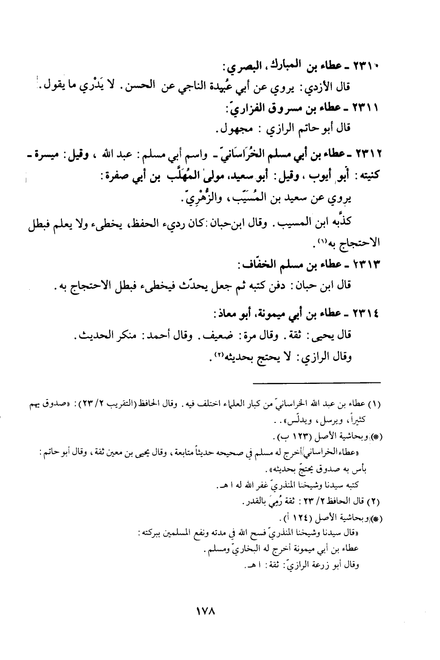 2312 - عَطاء بن أبي مُسلم الْخُرَاسَانِي وَاسم أبي مُسلم عبد الله وَقيل ميسرَة كنيته أَبُو أَيُّوب وَقيل أَبُو سعيد مولى الْمُهلب بن أبي صفرَة يروي عَن سعيد بن الْمسيب وَالزهْرِيّ كذبه ابْن الْمسيب وَقَالَ ابْن حبَان كَانَ رَدِيء الْحِفْظ يخطيء وَلَا يعلم فَبَطل الِاحْتِجَاج بِهِ