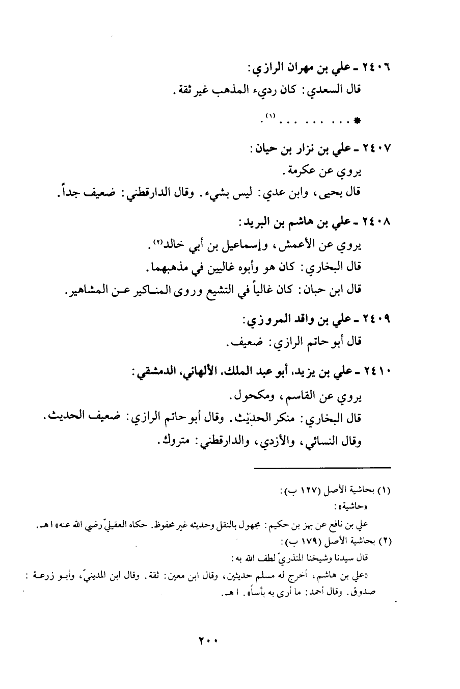 2406 - عَليّ بن مهْرَان الرَّازِيّ قَالَ السَّعْدِيّ كَانَ رَدِيء الْمَذْهَب غير ثِقَة
