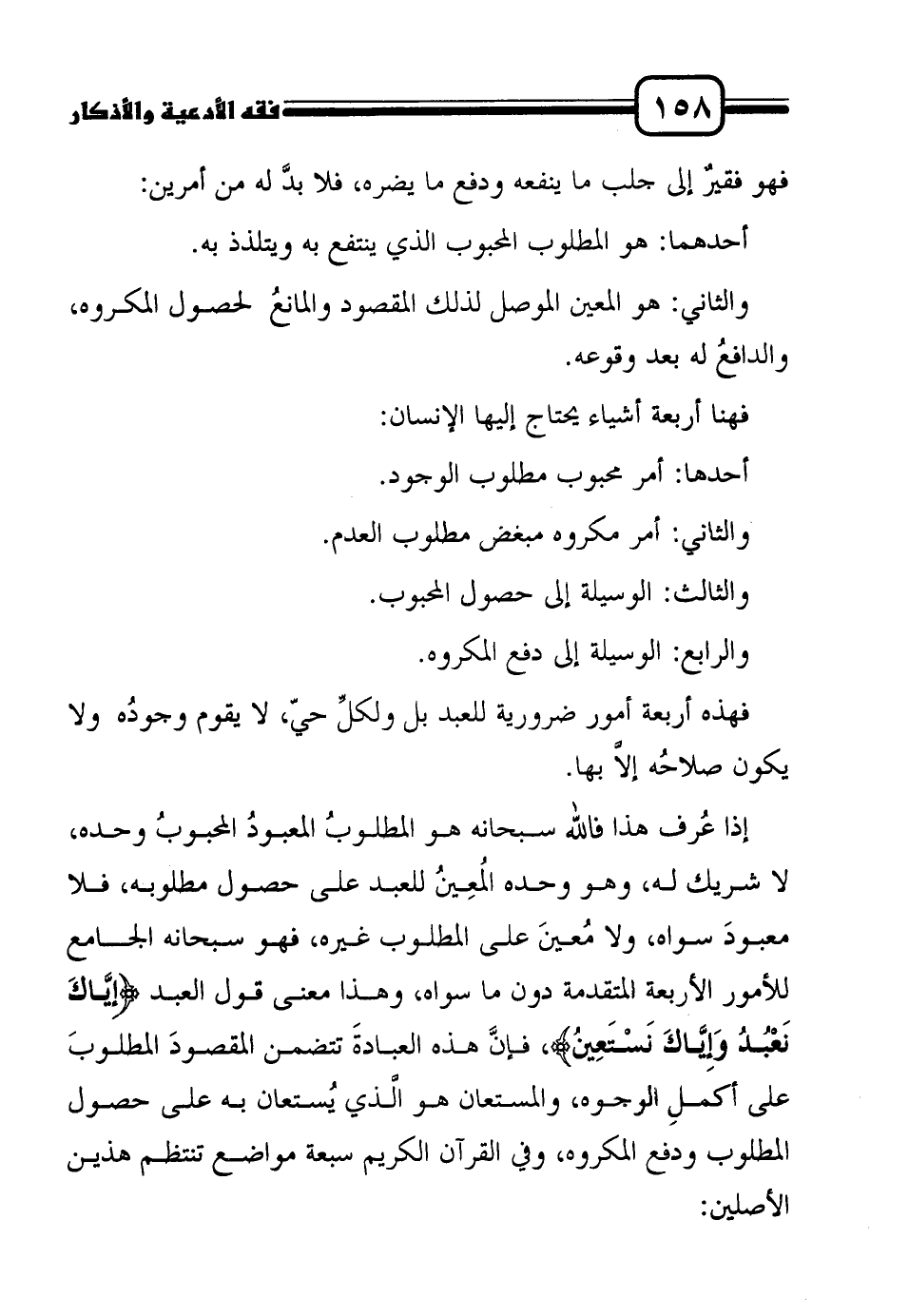 فهذه أربعة أمور ضرورية للعبد بل ولكلِّ حيّ، لا يقوم وجودُه ولا يكون صلاحُه إلاَّ بها.
