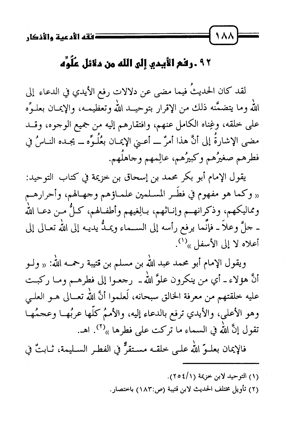 92 ـ رفع الأيدي إلى الله من دلائل عُلُوِّه