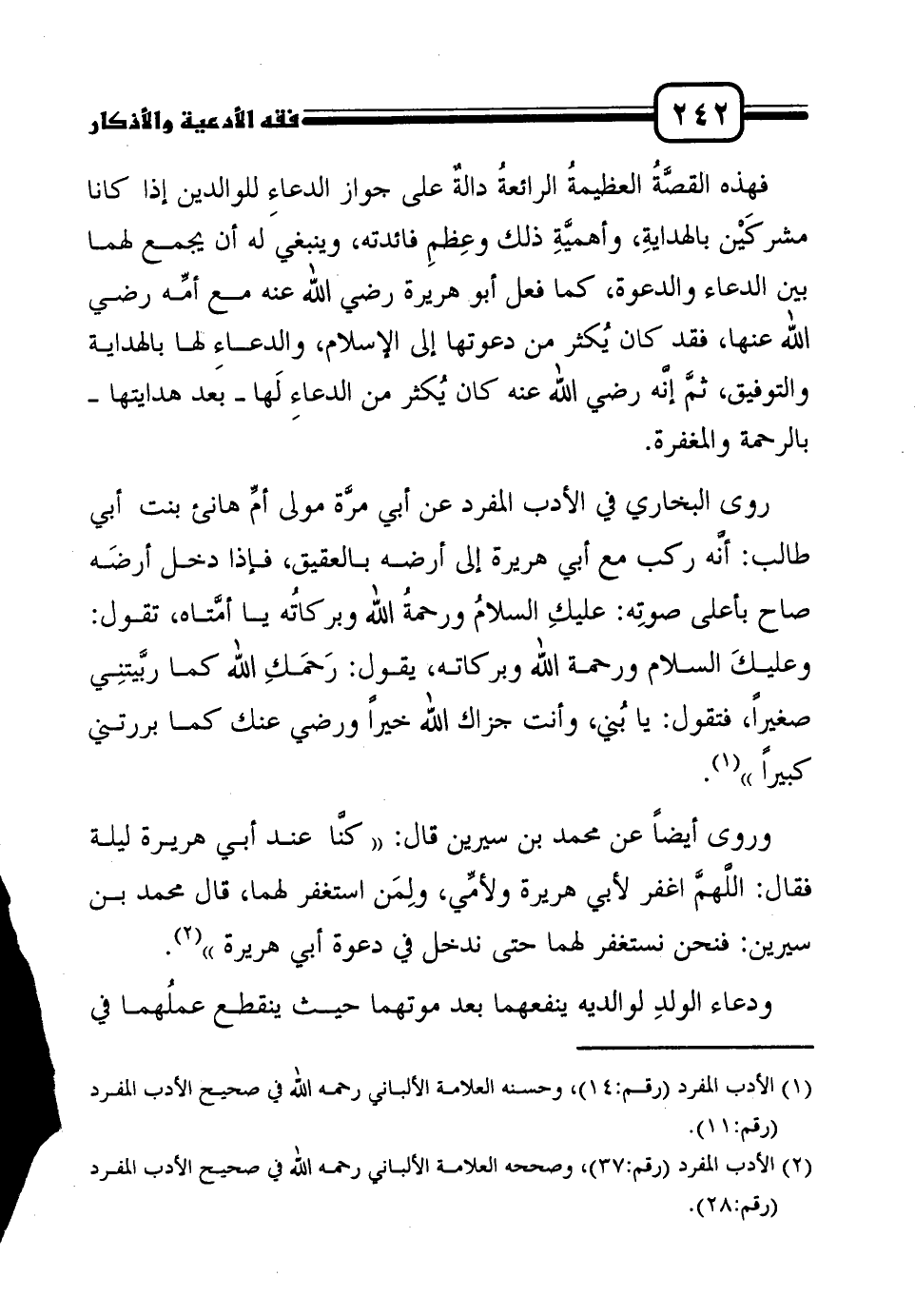 2 الأدب المفرد (رقم:37) ، وصححه العلامة الألباني رحمه الله في صحيح الأدب المفرد (رقم:28) .