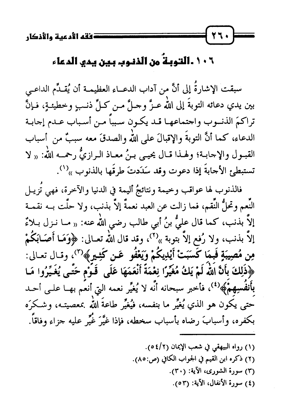 106 ـ التوبةُ من الذنوب بين يدي الدعاء