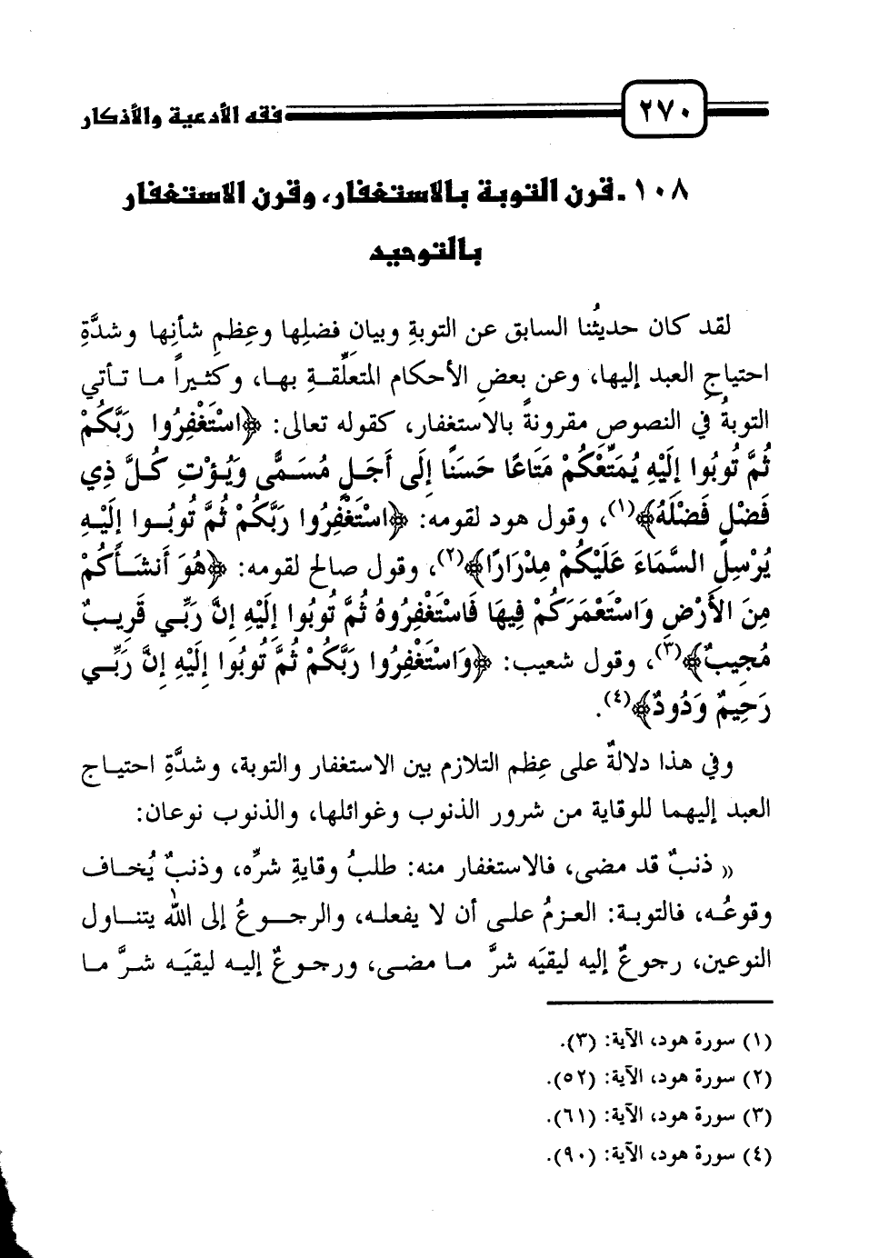 108 ـ قرن التوبة بالاستغفار، وقرن الاستغفار بالتوحيد