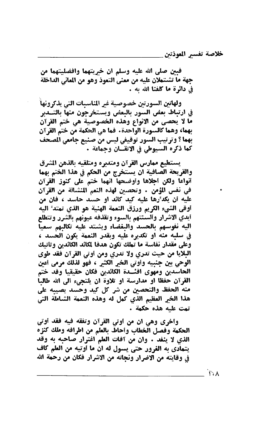 يستطيع ممارس القرآن ومتدبره ومتلقيه بالذهن المشرق والقريحة الصافية أن يستخرج من الحكم في هذا الختم بهما أنواعًا ولكن أجلاها وأوضحها أنهما ختم على كنوز القرآن في نفس المؤمن. وتحصين لهذه النعم المنشالة من القرآن عليه أن يكدِّرها عليه كيد كائد أو حسد حاسد، فإن من أوتي الشيء الكريم ورزق النعمة الهنية هو الذي تمتدُّ إليه أيدي الأشرار وألسنتهم بالسوء وتقذفه عيونهم بالشرر وتتطلع إليه نفوسهم بالحسد والبغضاء ويشتد عليه تكالبهم سعيًا في سلبه منه أو تكديره عليه وبقدر النعمة يكون الحسد، وعلى مقدار نفاسة ما تملك تكون هدفًا لمكائد الكائدين وتأتيك البلايا من حيث تدري ولا تدري ومن أوتي القرآن فقد طوى الوحي بين جنبيه وأوتي الخير الكثير، فهو لذلك مرمى أعين الحاسدين ومهوى أفئدة الكائدين فكان حقيقًا وقد ختم القرآن حفظًا أو مدارسة أو تلاوة أن يلتجىء إلى الله طالبًا منه الحفظ والتحصين من شر كل كيد وحسد يصيبه على هذا الخير العظيم الذي كمل له وهذه النعمة الشاملة التي تمت عليه هذه حكمة.