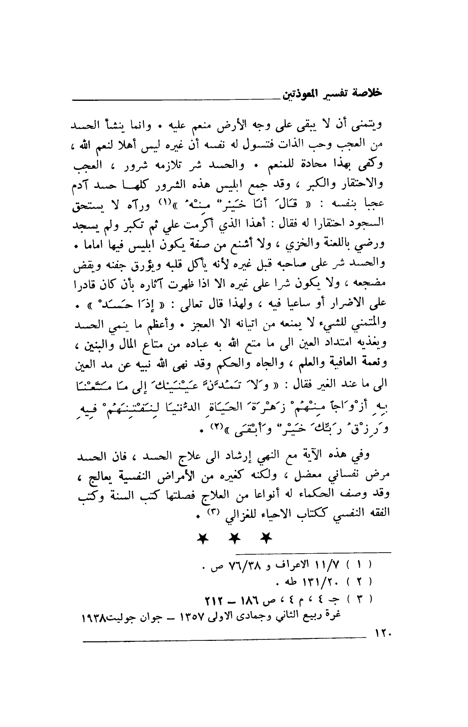 وفي هذه الآية مع النهي إرشاد إلى علاج الحسد، فإن الحسد مرض نفساني معضل، ولكنه كغيره من الأمراض النفسية يعالج، وقد وصف الحكماء له أنواعًا من العلاج فصلتها كتب السنة وكتب الفقه النفسي ككتاب الإحياء للغزالي (1).