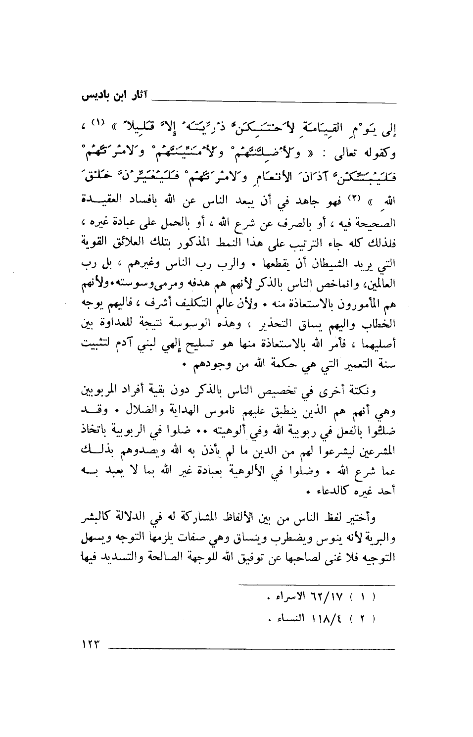 واختير لفظ الناس من بين الألفاظ المشاركة له في الدلالة كالبشر والبرية لأنه يَنُوسُ ويضطرب وينساق وهي صفات يلزمها التوجه ويسهل التوجيه فلا غنى لصاحبها عن توفيق الله للوجهة الصالحة والتسديد فيها
