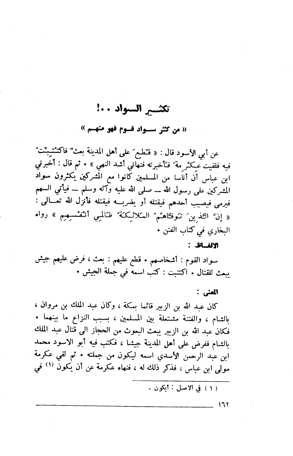 كان عبد الله بن الزبير قائما بمكة، وكان عبد الملك بن مروان، بالشام، والفتنة مشتعلة بين المسلمين، بسبب النزاع ما بينهما. فكان عبد الله بن الزبير يبعث البعوث من الحجاز إلى قتال عبد الملك بالشام ففرض على أهل المدينة جيشا، فكتب فيه أبو الأسود محمد ابن عبد الرحمن الأسدي اسمه ليكون من جملته. ثم لقي عكرمة مولى ابن عباس، فذكر ذلك له، فنهاه عكرمة عن أن يكون (1) في