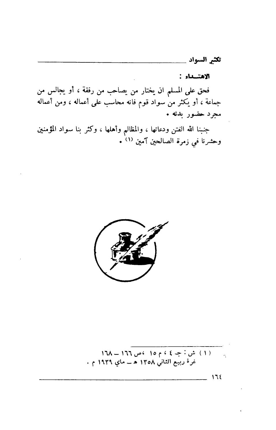 جنبنا الله الفتن ودعاتها، والمظالم وأهلها، وكثر بنا سواد المؤمنين وحشرنا في زمرة الصالحين آمين (1).