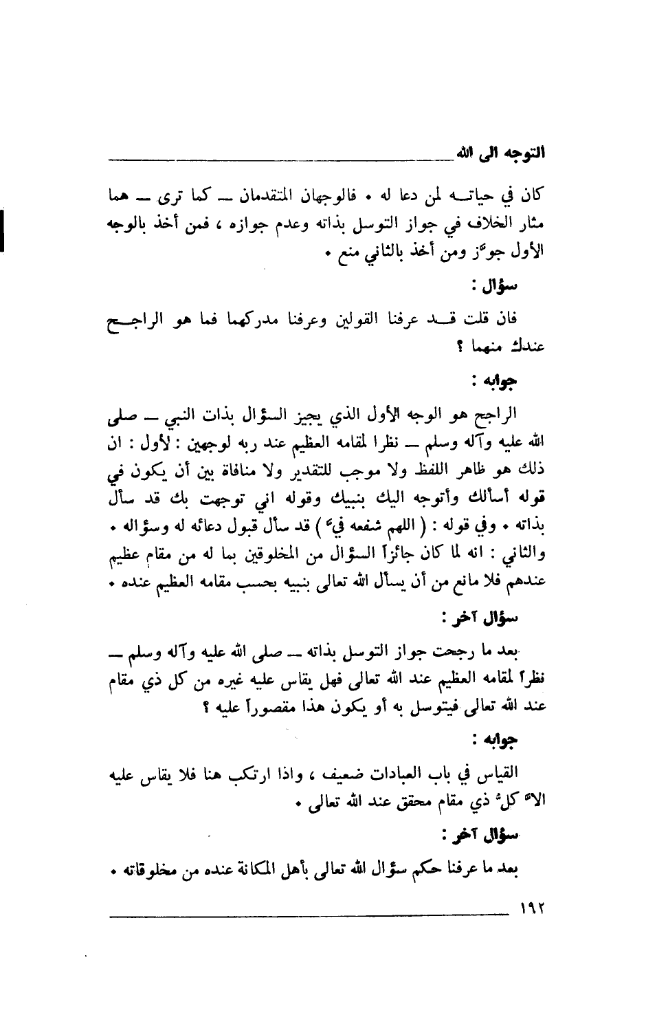 كان في حياته لمن دعا له. فالوجهان المتقدمان- كما ترى- هما مثار الخلاف في جواز التوسل بذاته وعدم جوازه، فمن أخذ بالوجه الأول جوَّز ومن أخذ بالثاني منع.