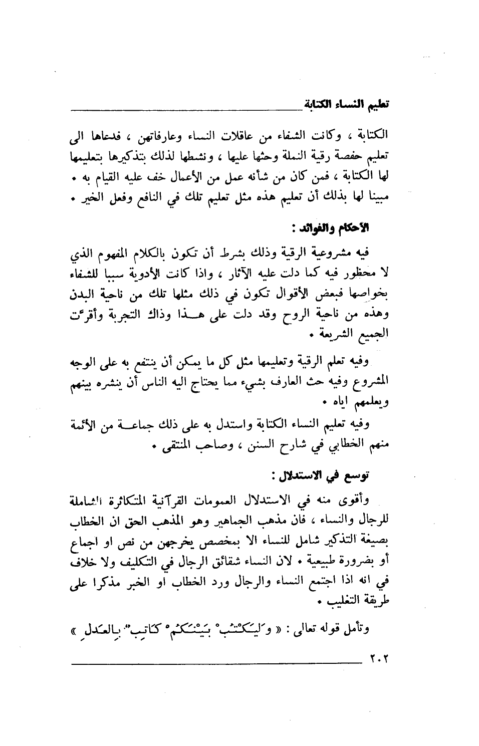 وفيه تعليم النساء الكتابة واستدل به على ذلك جماعة من الأئمة منهم الخطابي في شارح السنن، وصاحب المنتقى.
