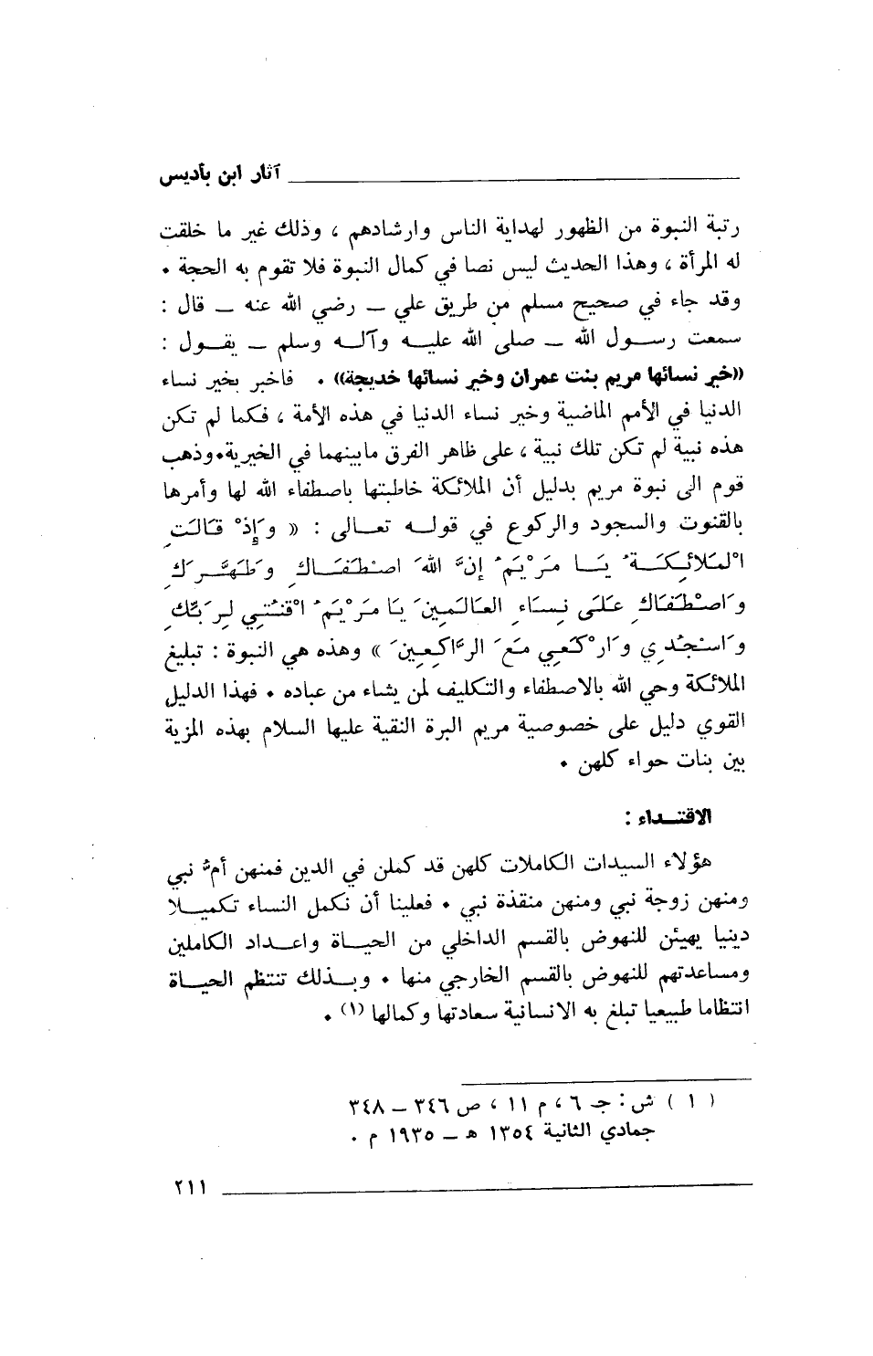 (1) ش: ج6، م 11، ص 346 - 348 جمادى الثانية 1354هـ - 1935م.