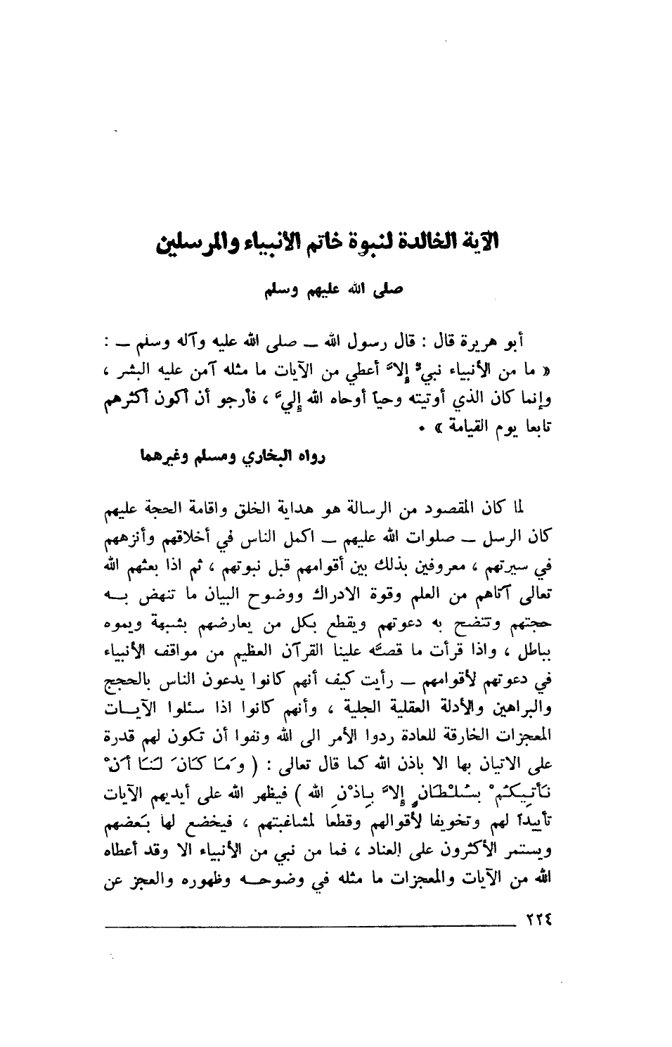الآيه الخالدة لنبوة خاتم الأنبياء والمرسلين صلى الله عليهم وسلم.