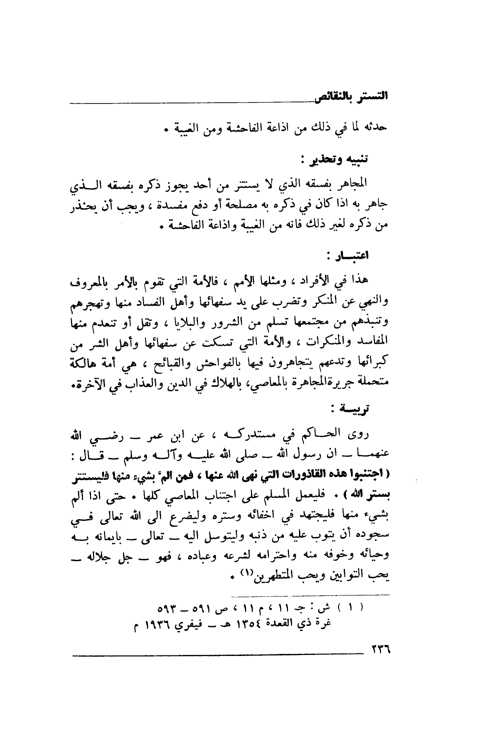 (1) ش: ج11، م 11، ص 591 - 593 غرة ذي القعدة 1354هـ- فيفري 1936م