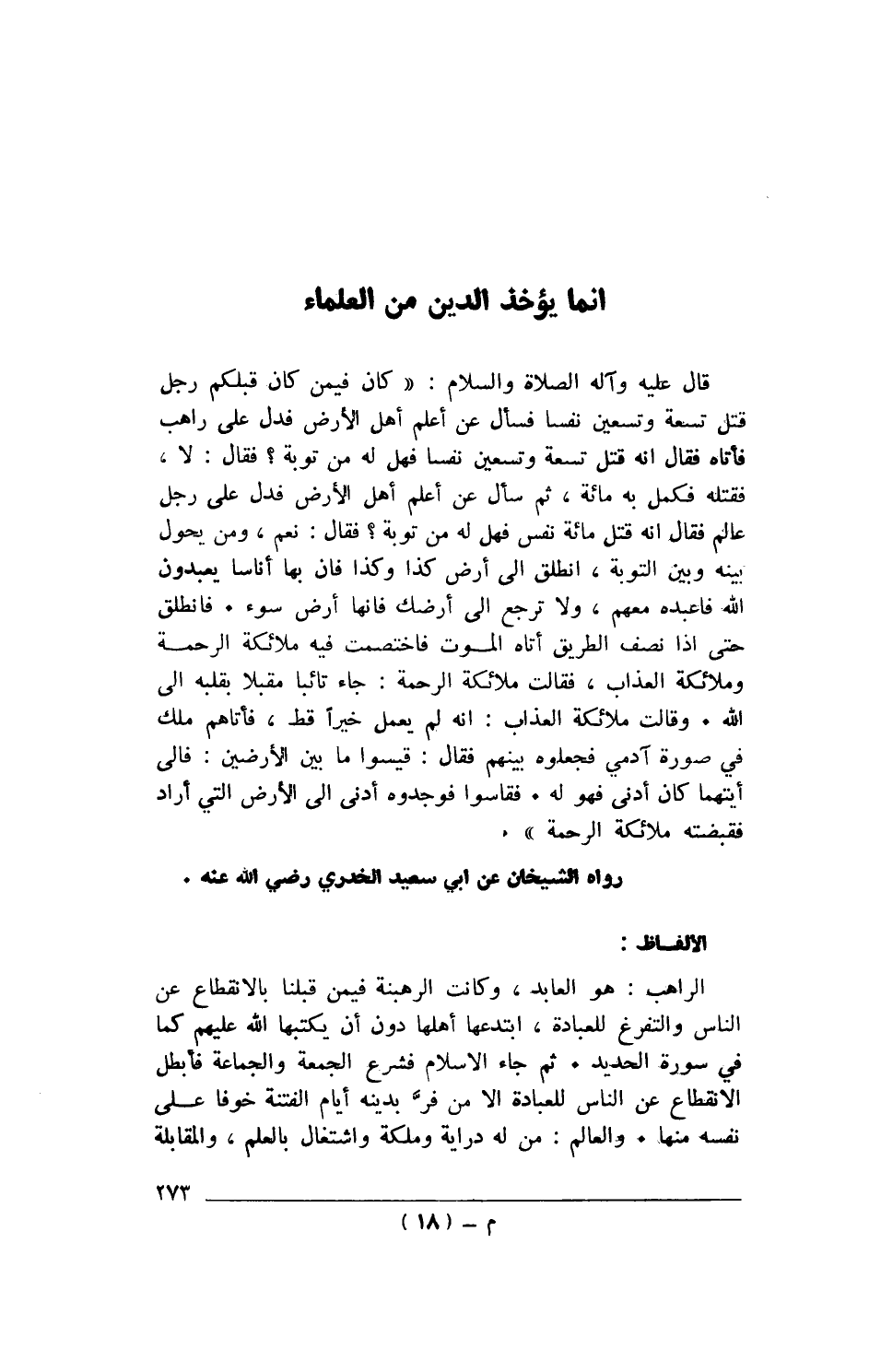 إِنَّمَا يُؤْخَذُ الدِّينُ مِنَ الْعُلَمَاءِ.