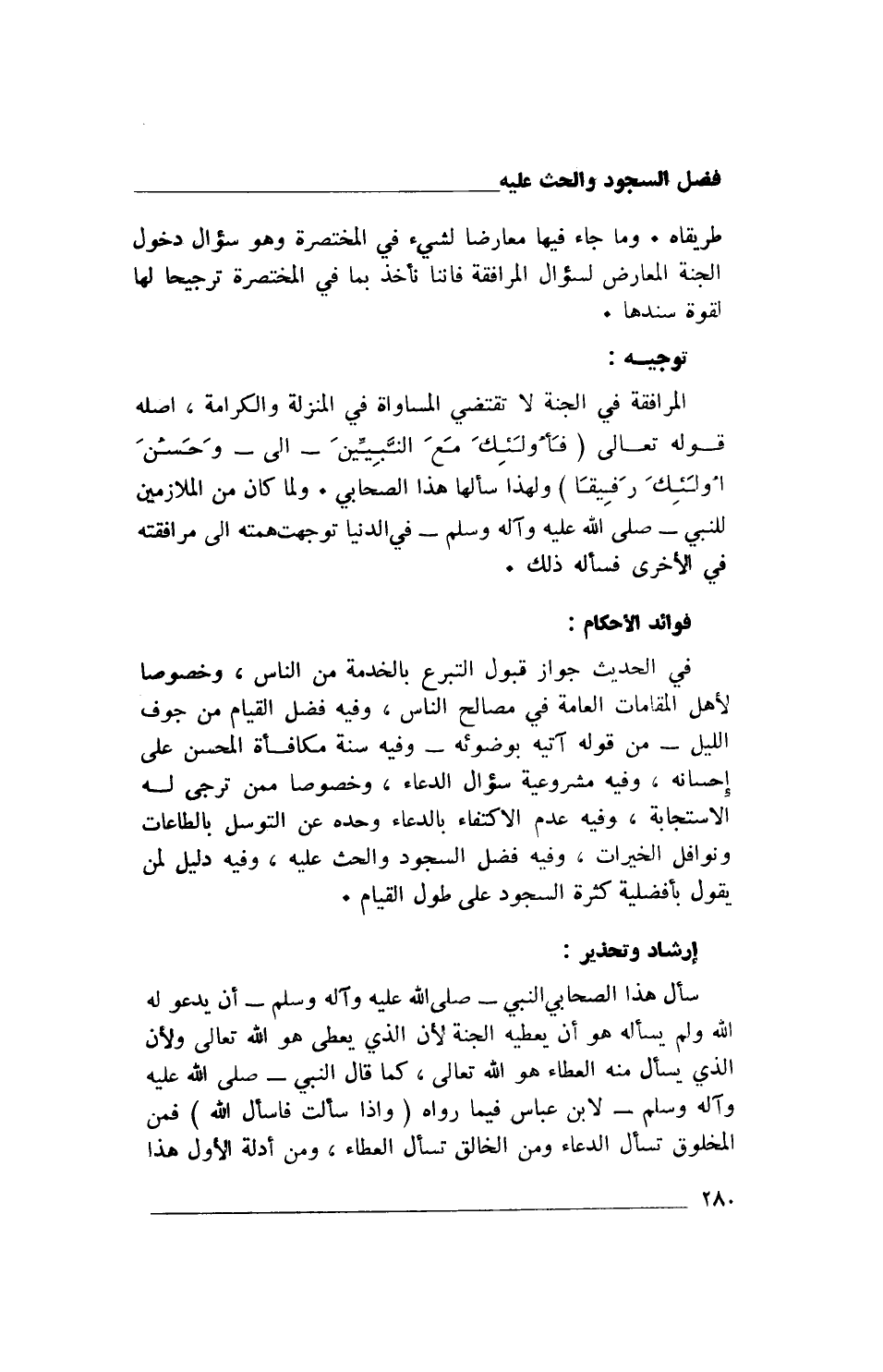 المرافقة في الجنة لا تقتضي المساواة في المنزلة والكرامة، أصله قوله تعالى: {فَأُولَئِكَ مَعَ الَّذِينَ أَنْعَمَ اللَّهُ عَلَيْهِمْ مِنَ النَّبِيِّينَ - إلى- وَحَسُنَ أُولَئِكَ رَفِيقًا} ولهذا سألها هذا الصحابي. ولما كان من الملازمين للنبي- صلى الله عليه وآله وسلم- في الدنيا توجهت همته إلى مرافقته في الأخرى فسأله ذلك.