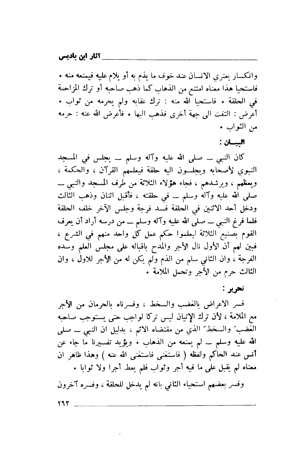 فسر الإعراض بالغضب والسخط، وفسرناه بالحرمان من الأجر مع الملامة، لأن ترك الإتيان ليس تركا لواجب حتى يستوجب صاحبه الغضب والسخط الذي من مقتضاه الإثم، بدليل أن النبي- صلى الله عليه وسلم- لم يمنعه من الذهاب. ويؤيد تفسيرنا ما جاء عن أنس عند الحاكم ولفظه (فاستغنى فاستغنى الله عنه) وهذا ظاهر أن معناه لم يقبل على ما فيه أجر وثواب فلم يعط أجرا ولا ثوابا.