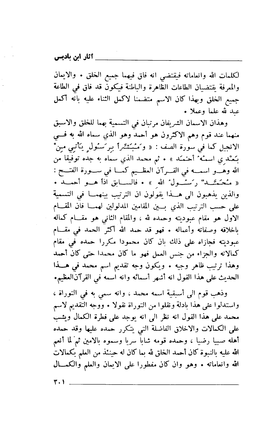 لكلمات الله وإنعاماته فيقتضي أنه فاق فيهما جميع الخلق. والايمان والمعرفة يقتضيان الطاعات الظاهرة والباطنة فيكون قد فاق في الطاعة جميع الخلق وبهذا كان الاسم متضمنا لأكمل الثناء عليه بأنه أكمل عبد لله علما وعملا.