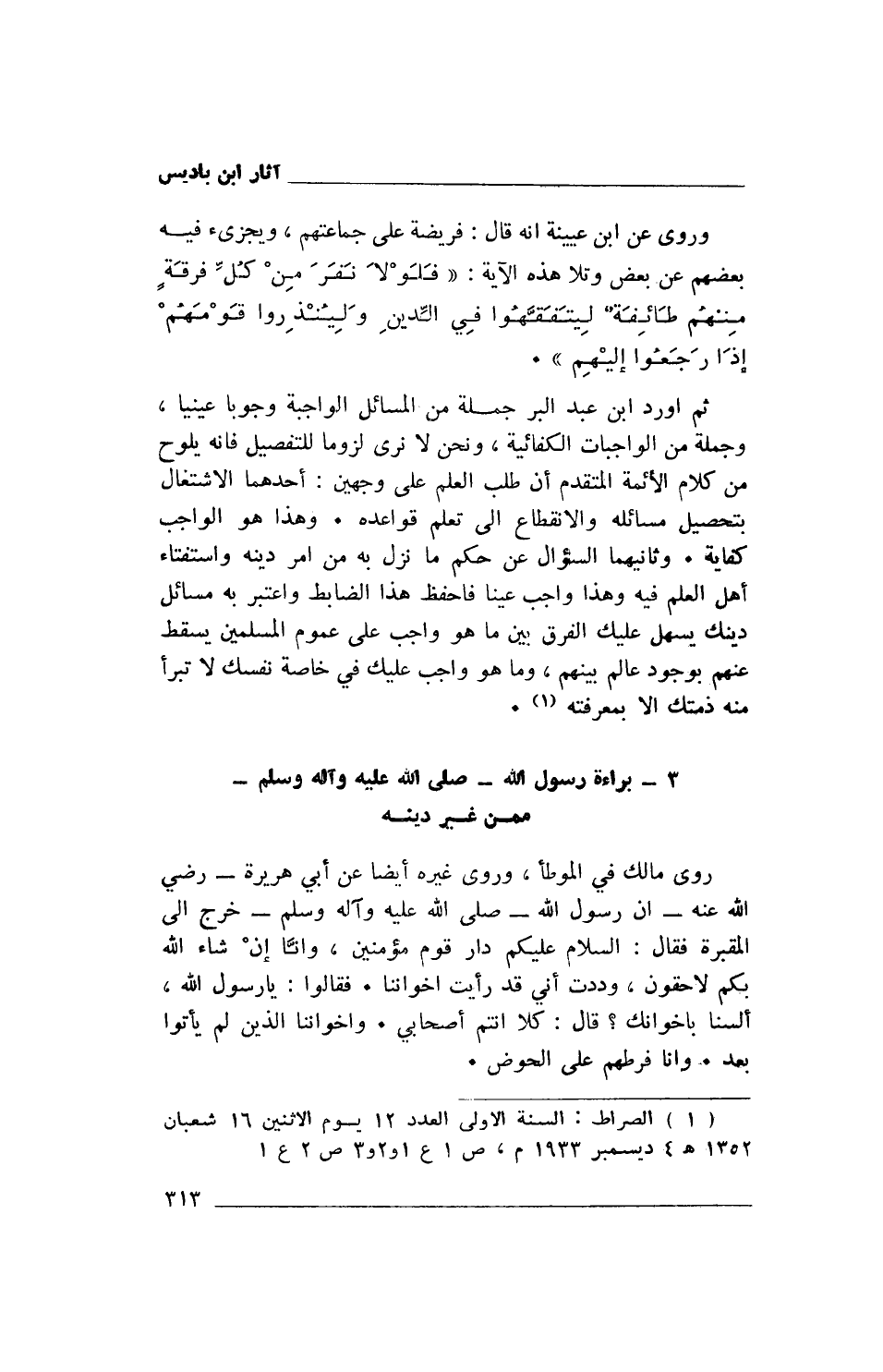(1) الصراط السنة الأولى العدد 12 يوم الإثنين 16 شعبان 1352هـ ديسمبر 1933م، ص1 ع1 و2 و3 ص2 ع1