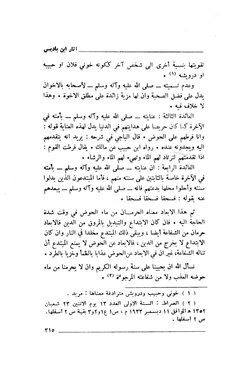 (2) الصراط: السنة الأولى العدد 13 يوم الإثنين 23 شعبان 1352 هـ الموافق 11 ديسمبر 1933م، ص1 ع1 و2 و3 بقية ص2 أسفلها. ص2 أسفلها.